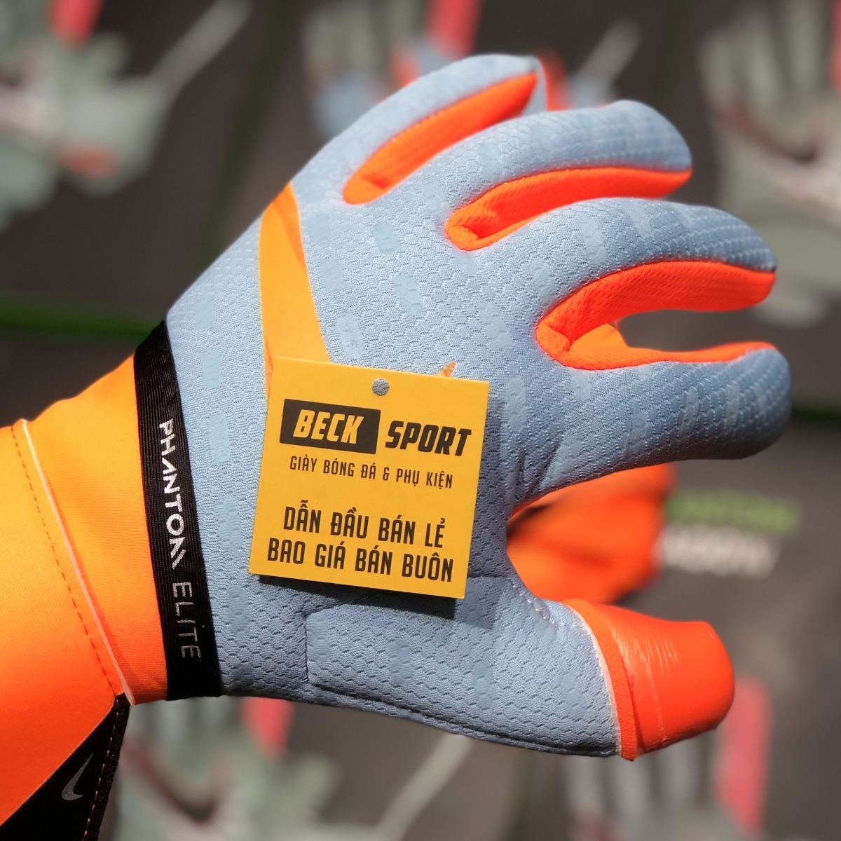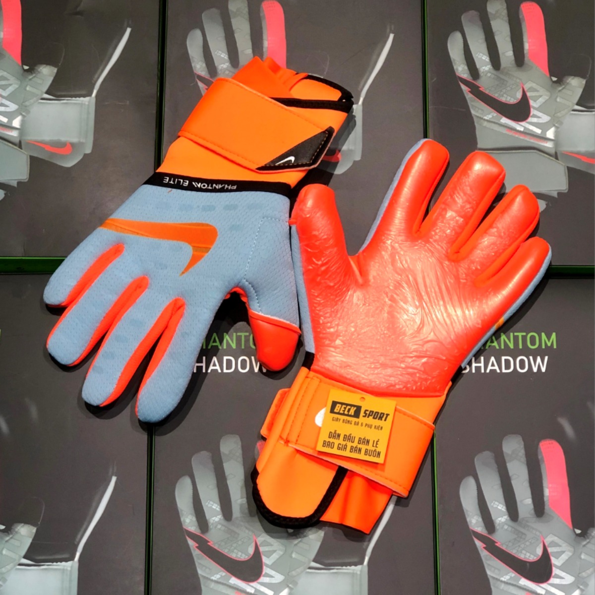 Găng Tay Nike Phantom Elite Xám Xanh Ngọc Vạch Cam ( Không Xương )