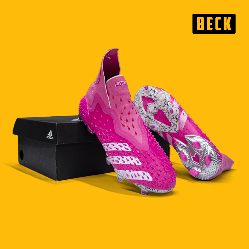 Giày Bóng Đá Adidas Predator Freak+ Hồng Trắng Cổ Cao Không Dây FG