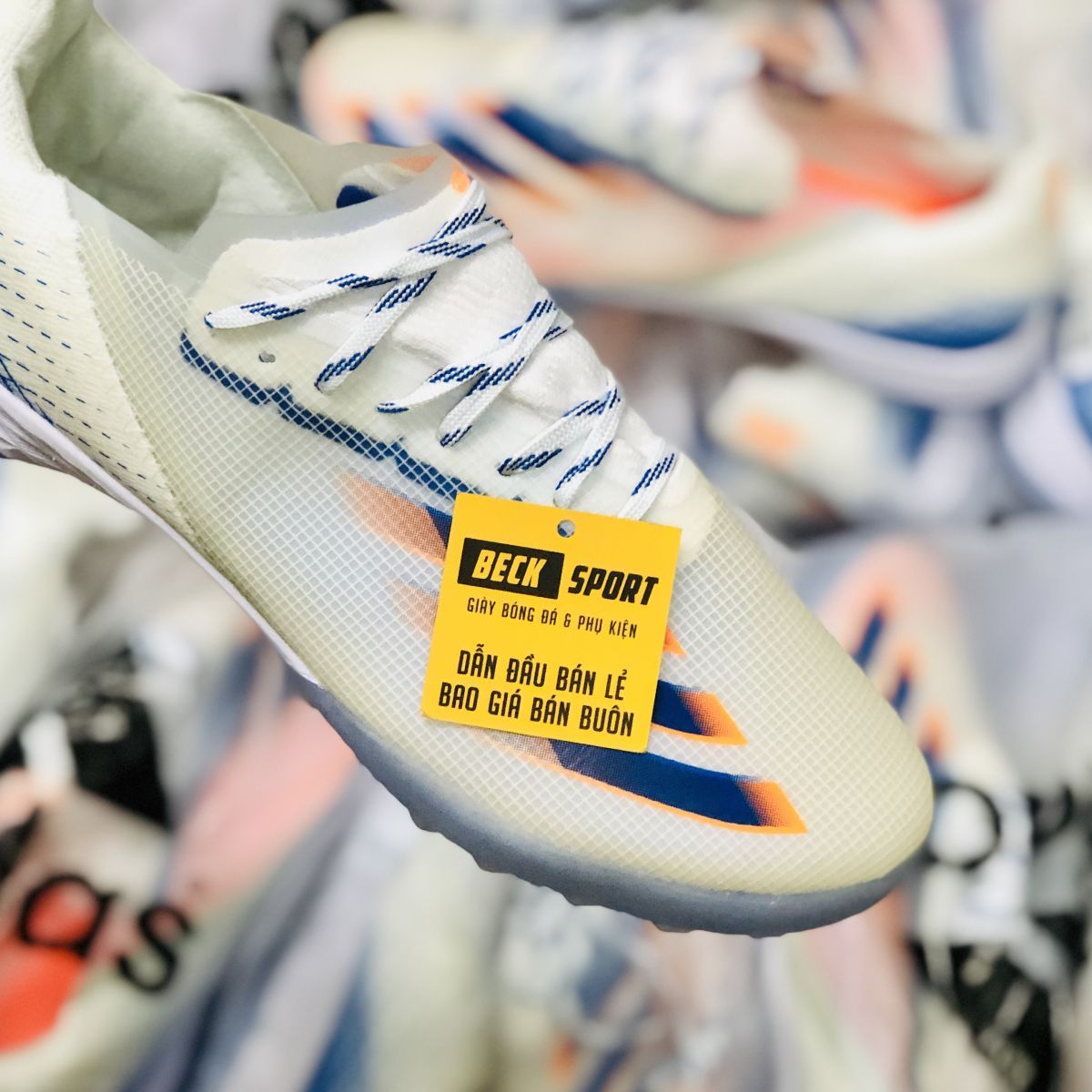 Giày Bóng Đá Adidas X Ghosted .1 Trắng Vạch Xanh Biển Cam TF