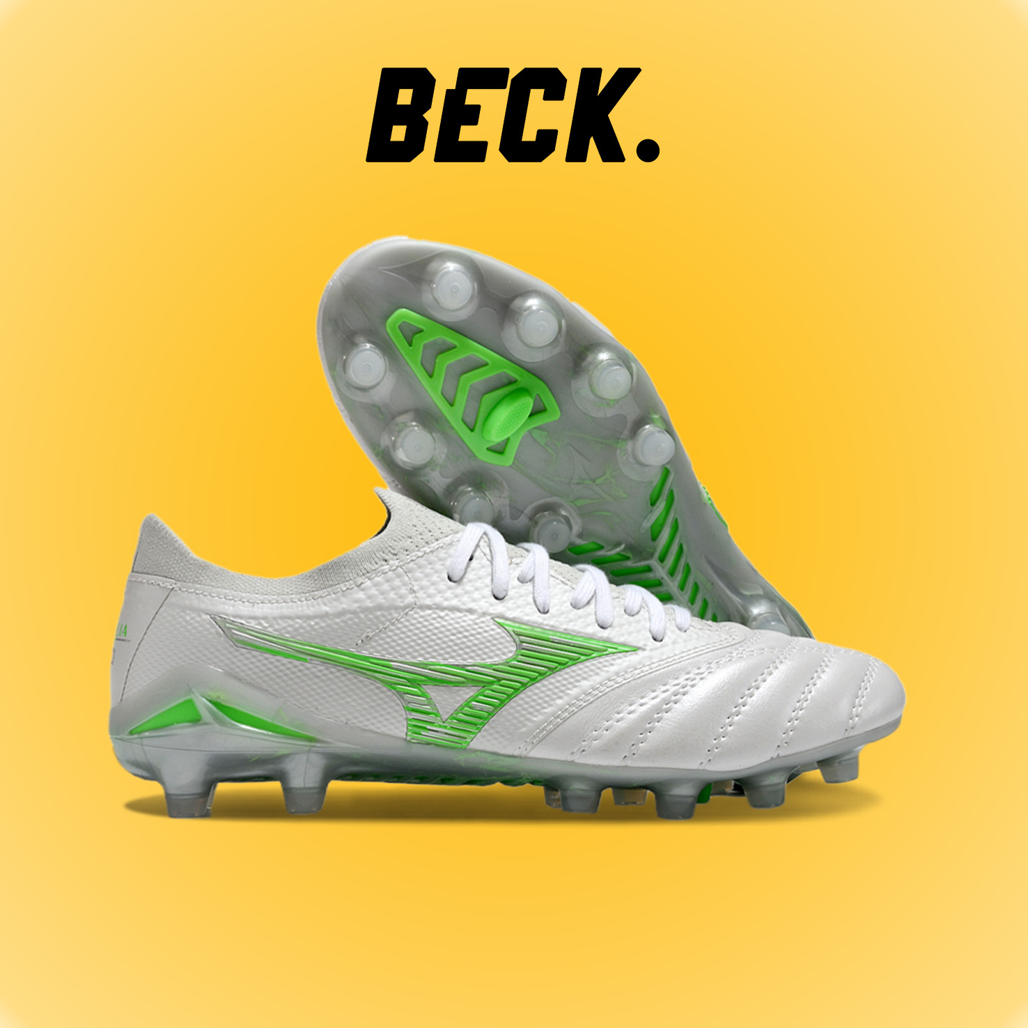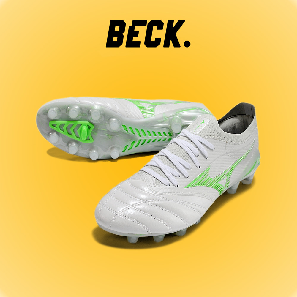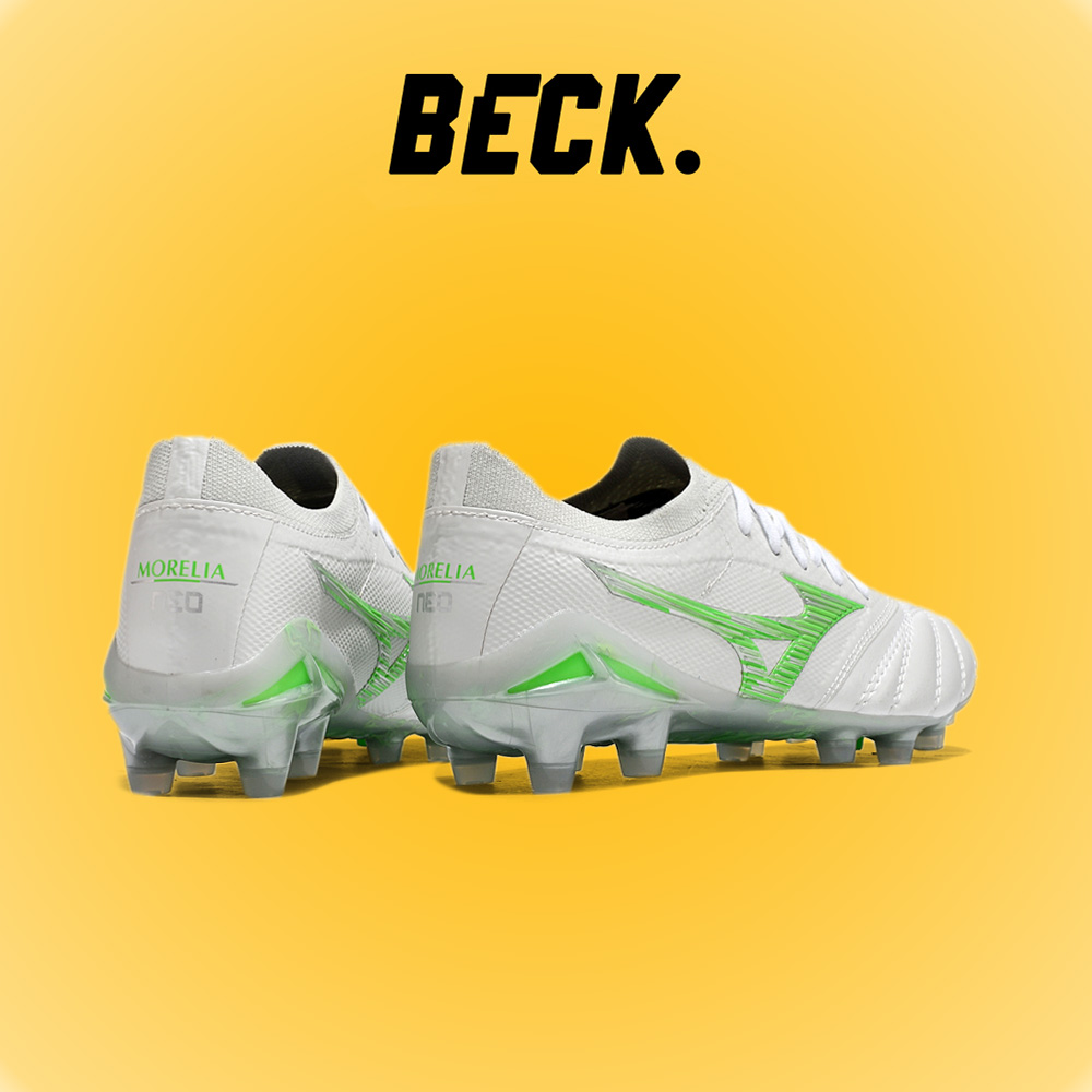 Giày Bóng Đá Mizuno Neo 4 Elite Trắng Vạch Xanh Lá Lưỡi Gà Liền FG