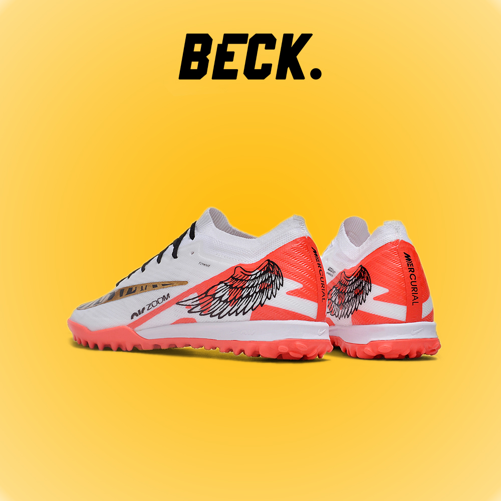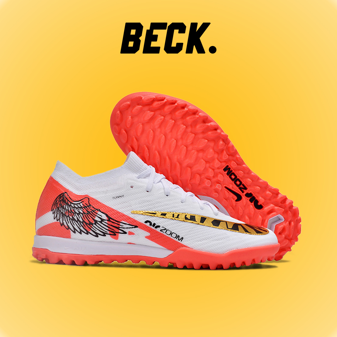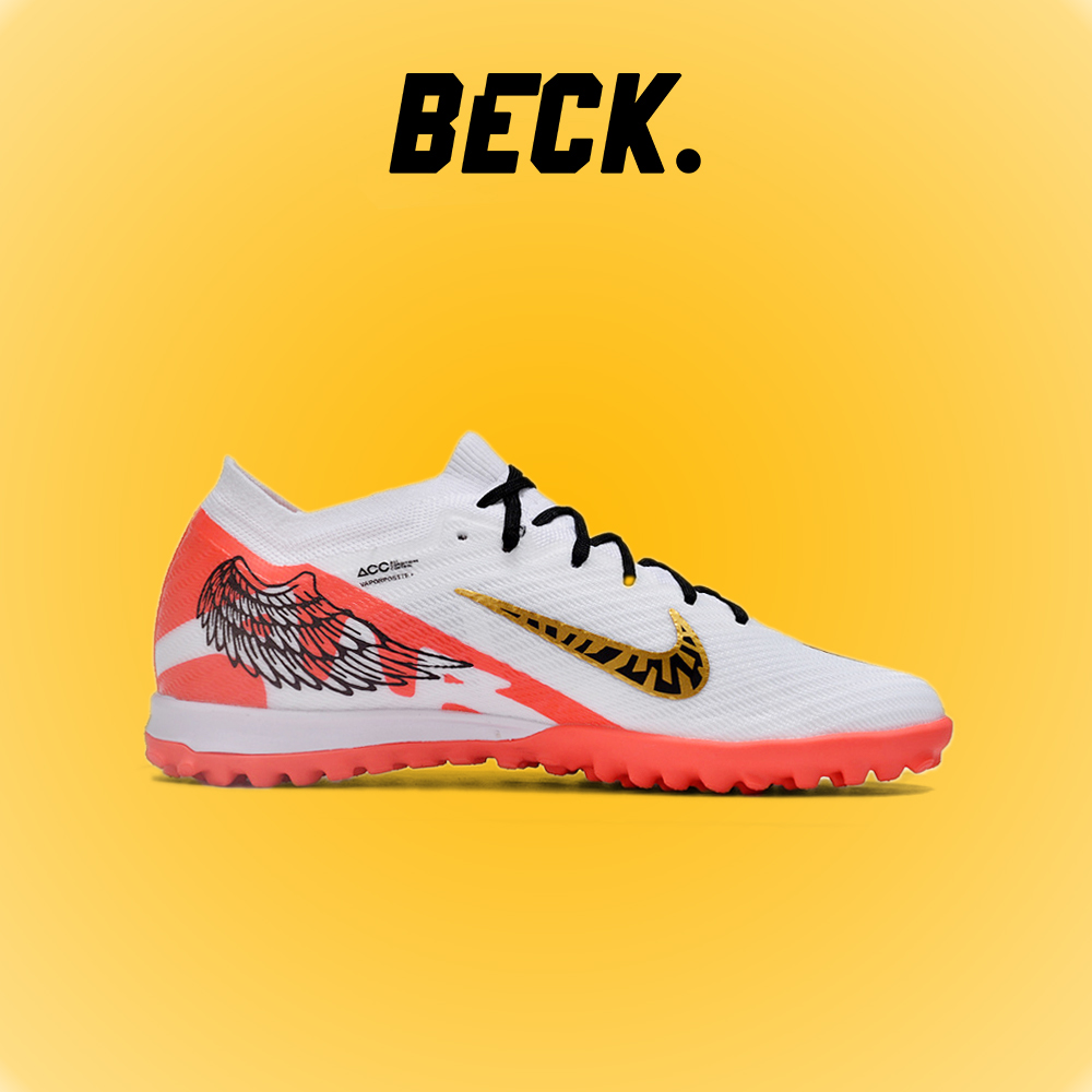 Giày Bóng Đá Nike Mercurial Vapor 15 Elite Custom Trắng Gót Đỏ Vạch Vàng Cổ Lửng TF