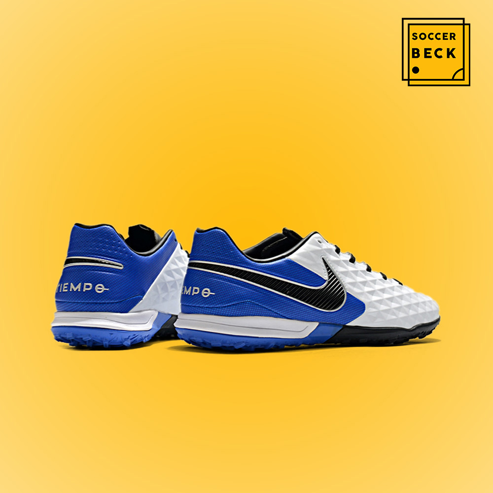 Giày Bóng Đá Nike Tiempo Legend 8 Pro Trắng Gót Xanh Biển Vạch Đen HQ TF