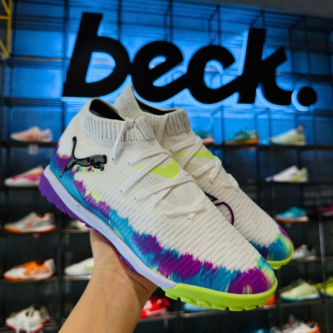 Giày Bóng Đá Puma Future 8 Ultimate Trắng Xanh Tím Loang Cổ Lửng TF