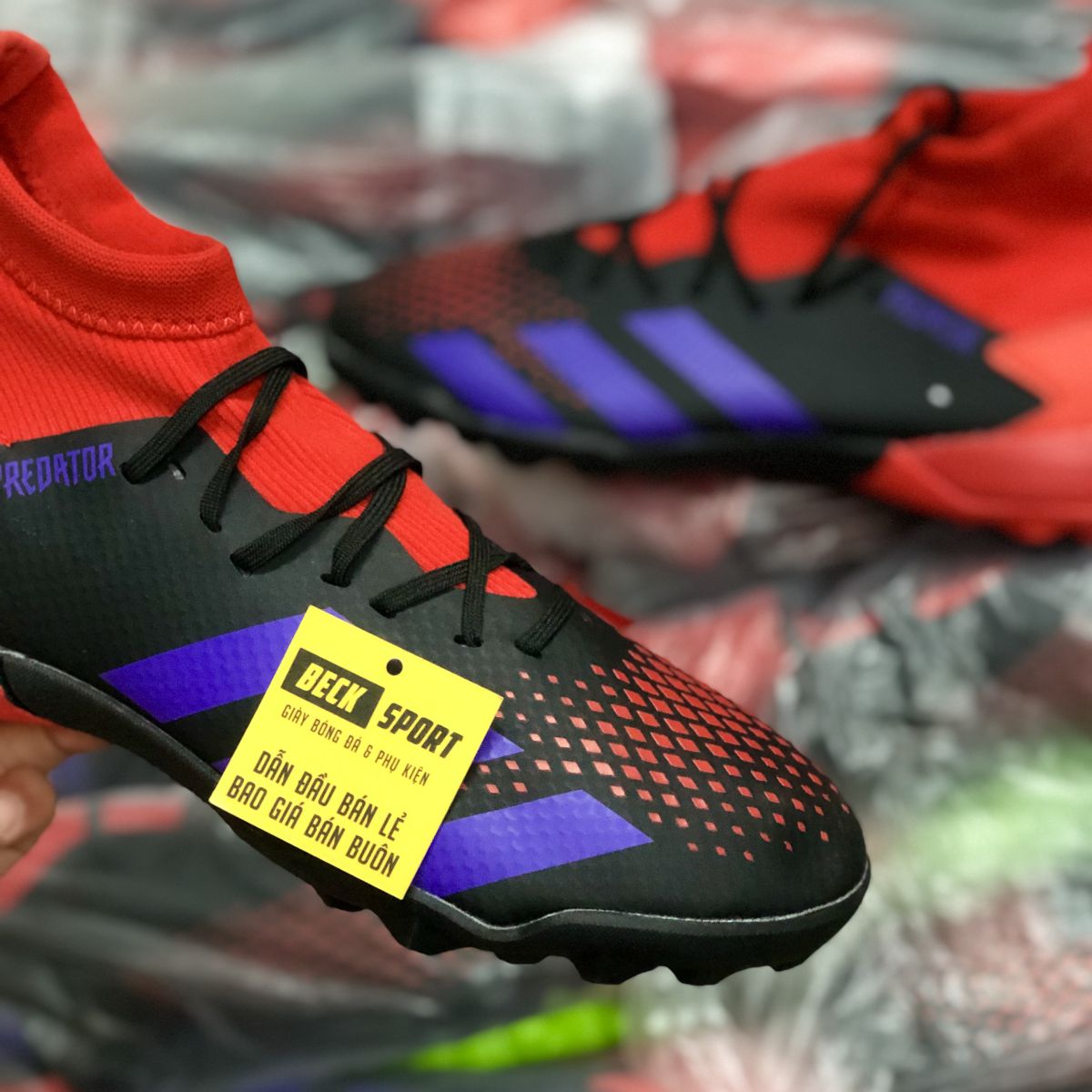 Giày Bóng Đá TQ Adidas Predator 20.3 Đen Gót Đỏ Vạch Tím Cao Cổ TF