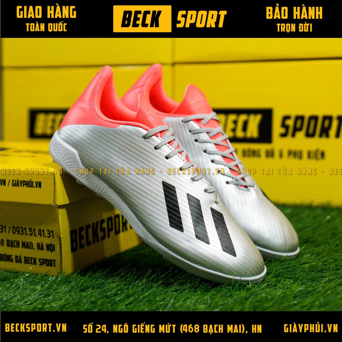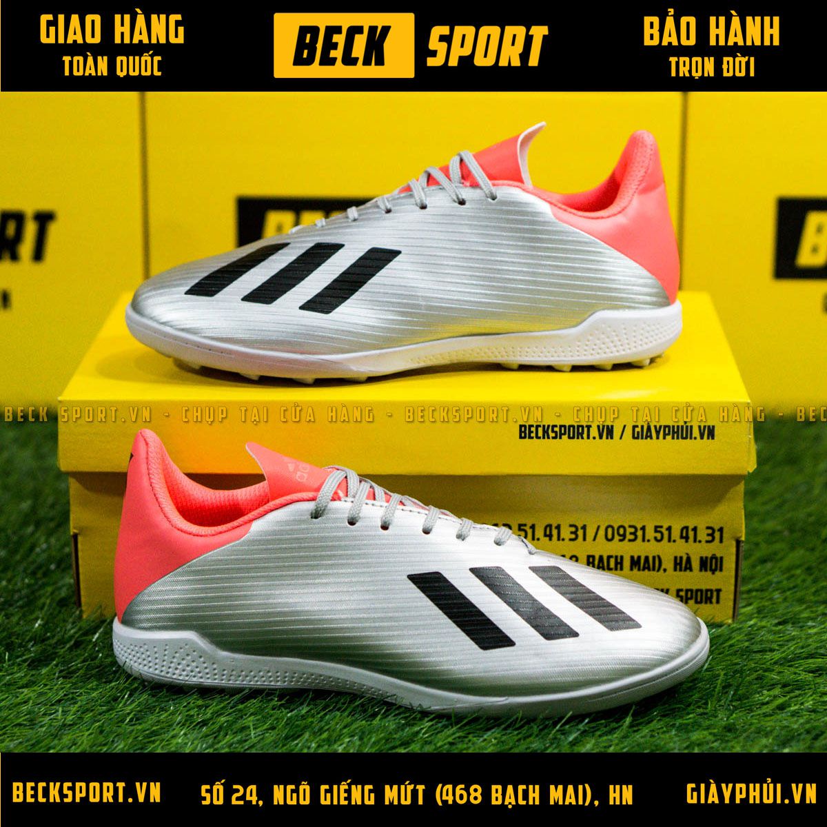 Giày Bóng Đá TQ Adidas X 19.3 Xám Vạch Đen Gót Hồng V3 TF
