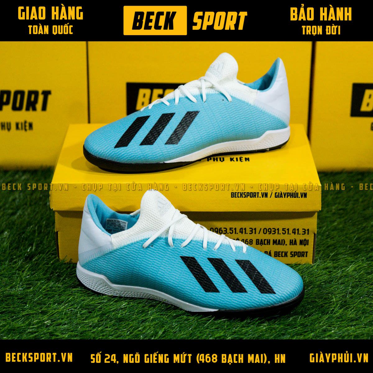 Giày Bóng Đá Adidas X 19.3 Xanh Biển Vạch Đen Gót Trắng TF