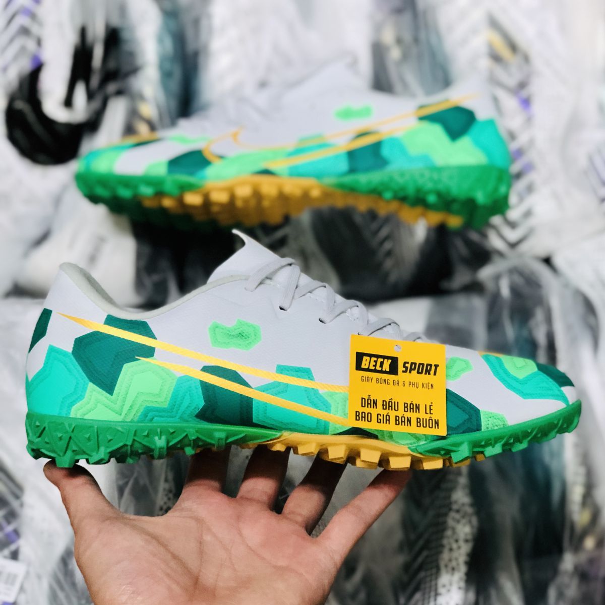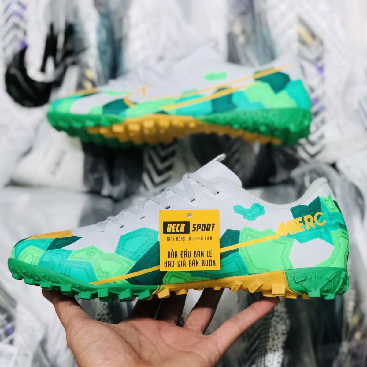 Giày Bóng Đá TQ Nike Mercurial 13 Academy Trắng Xanh Lục Vạch Vàng TF