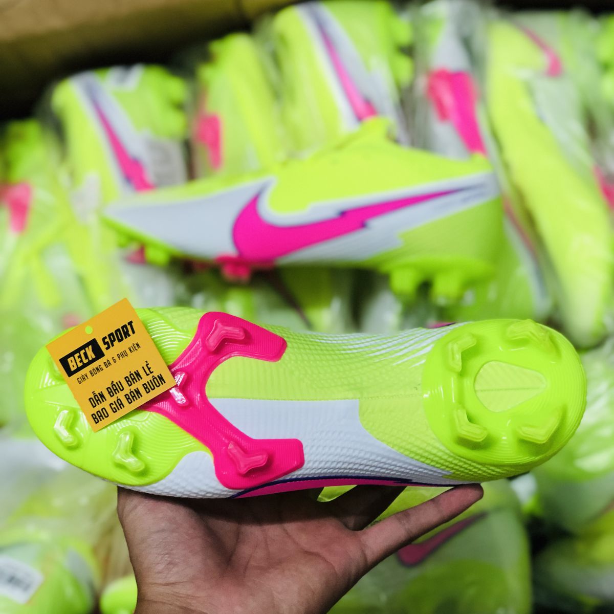 Giày Bóng Đá TQ Nike Mercurial Vapor 13 Elite Nõn Chuối Trắng Vạch Hồng Cổ Lửng FG