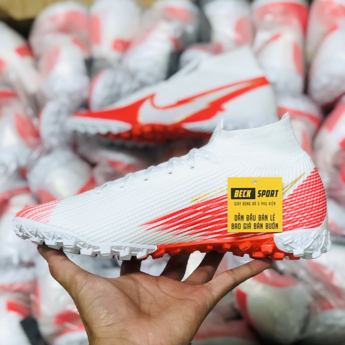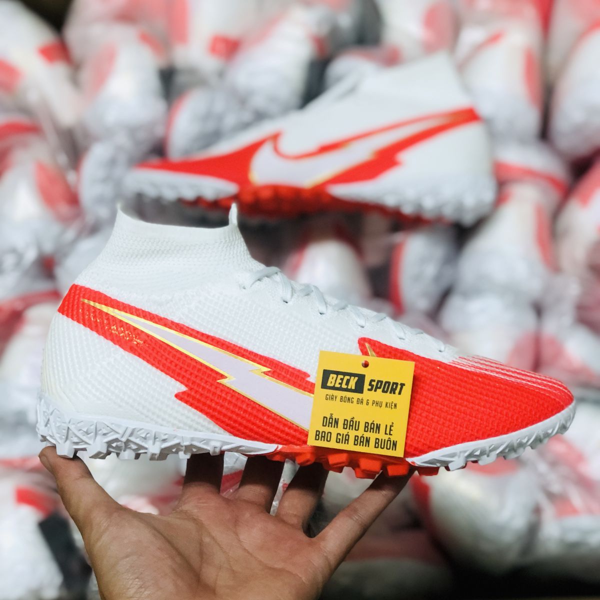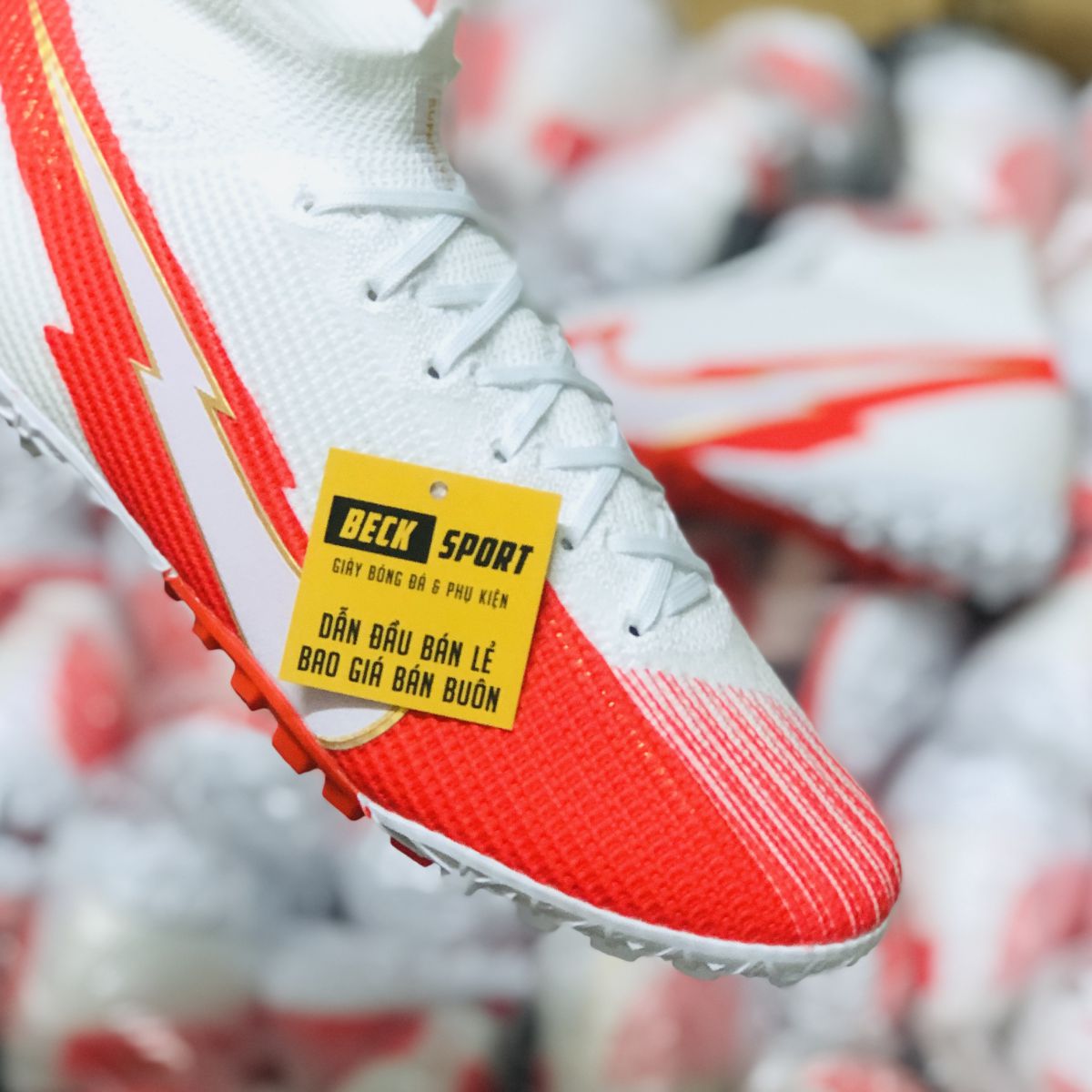 Giày Bóng Đá TQ Nike Mercurial Superfly 7 Elite Trắng Đỏ Vạch Trắng Cổ Cao TF