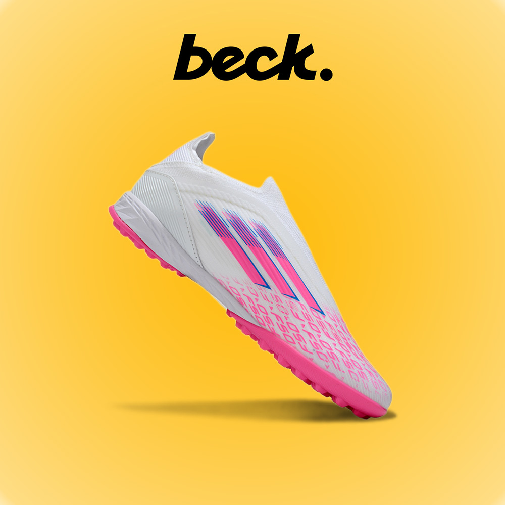 Giày Bóng Đá Trẻ Em Adidas F50 Elite Laceless Trắng Vạch Hồng Không Dây HQ TF