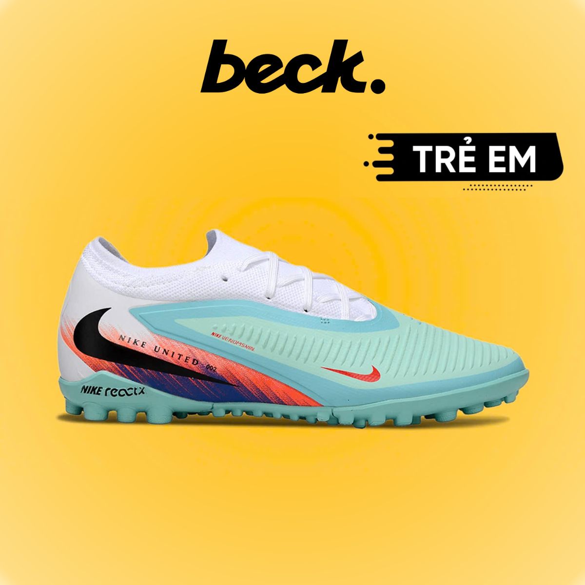 Giày Bóng Đá Trẻ Em Nike Phantom 6 Pro United Xanh Ngọc Gót Cam Cổ Lửng TF