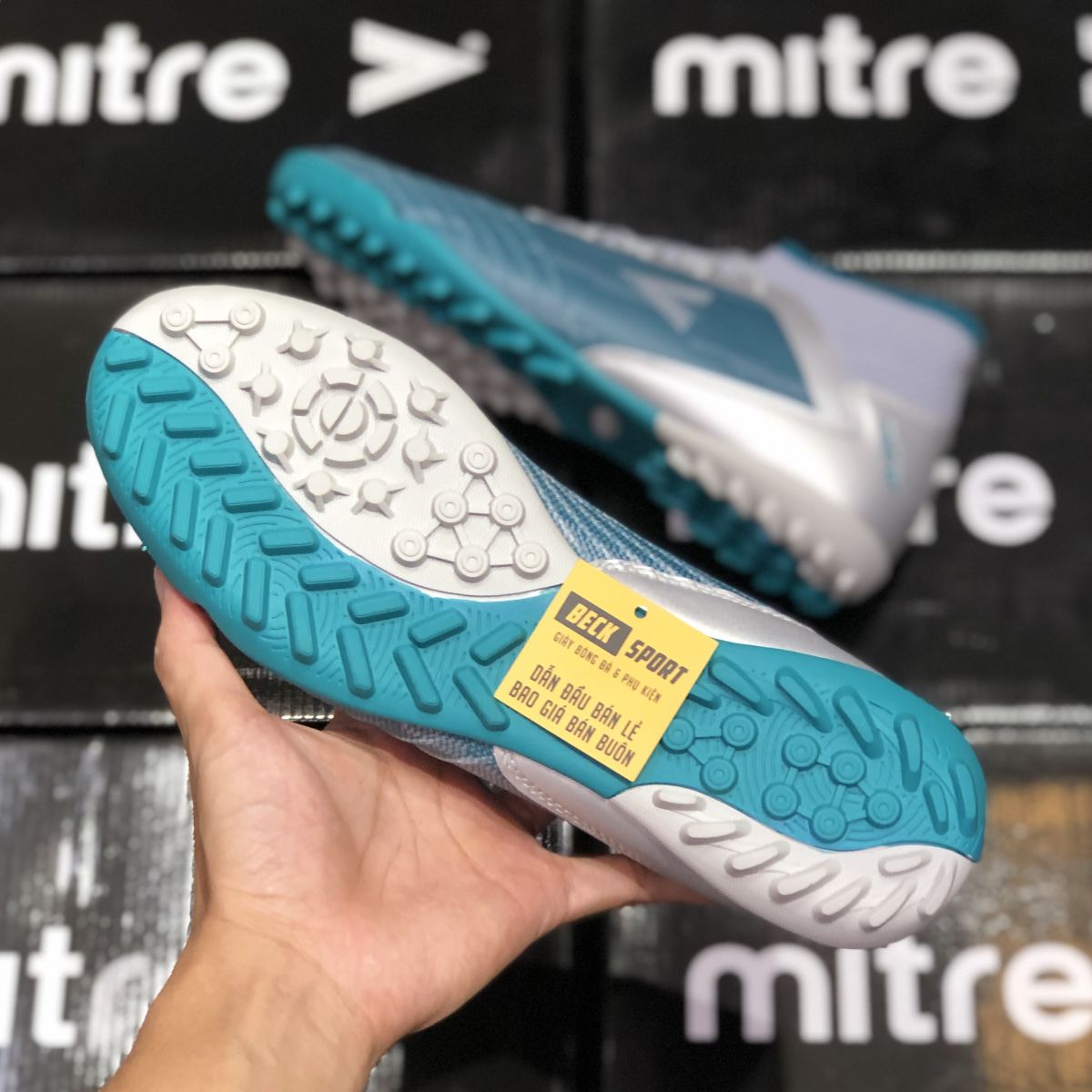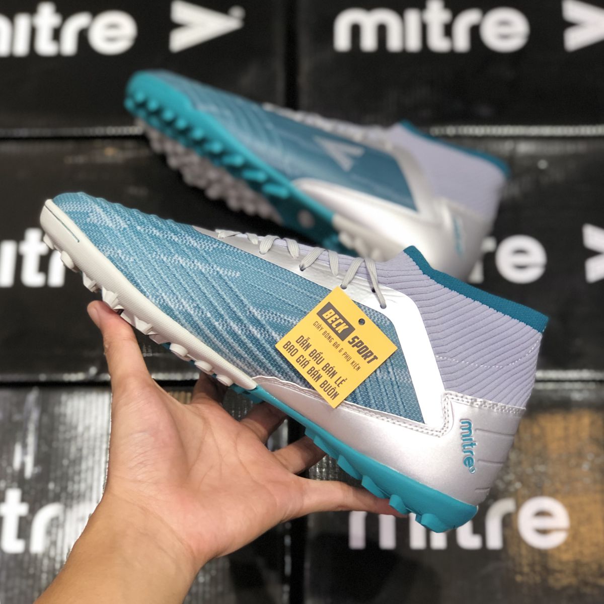 Giày Bóng Đá VN Chính Hãng Mitre 181229 Xám Xanh Lục Cao Cổ TF