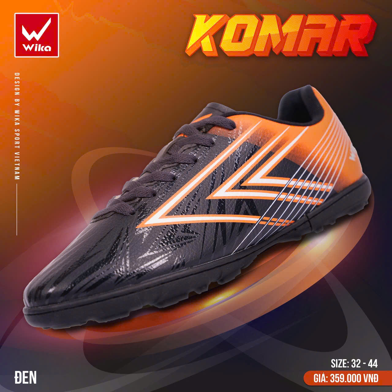 Giày Bóng Đá Wika Komar Đen TF