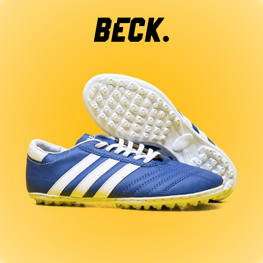 Giày Phủi 3 Sọc Loại 1 - Beck Xanh Biển Sọc Trắng